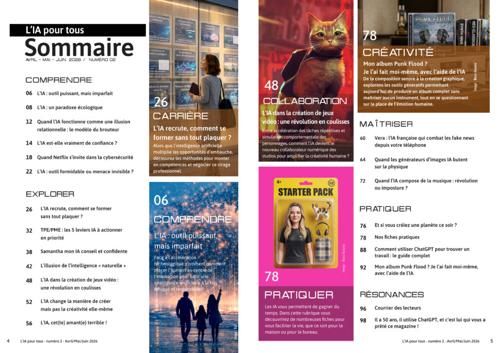 L’édito de Frédéric Boisdron, rédacteur en chef, donne le ton dès les premières lignes. Interdire l’IA aux enfants en 2026 revient à leur retirer une carte dont ils auront besoin toute leur vie. Cette conviction traverse le numéro de part en part, des articles sur la cyberpsychologie jusqu’au portrait-robot du lecteur type, cet homme d’une cinquantaine d’années qui a prêté ce magazine à son collègue avant même de l’avoir terminé.