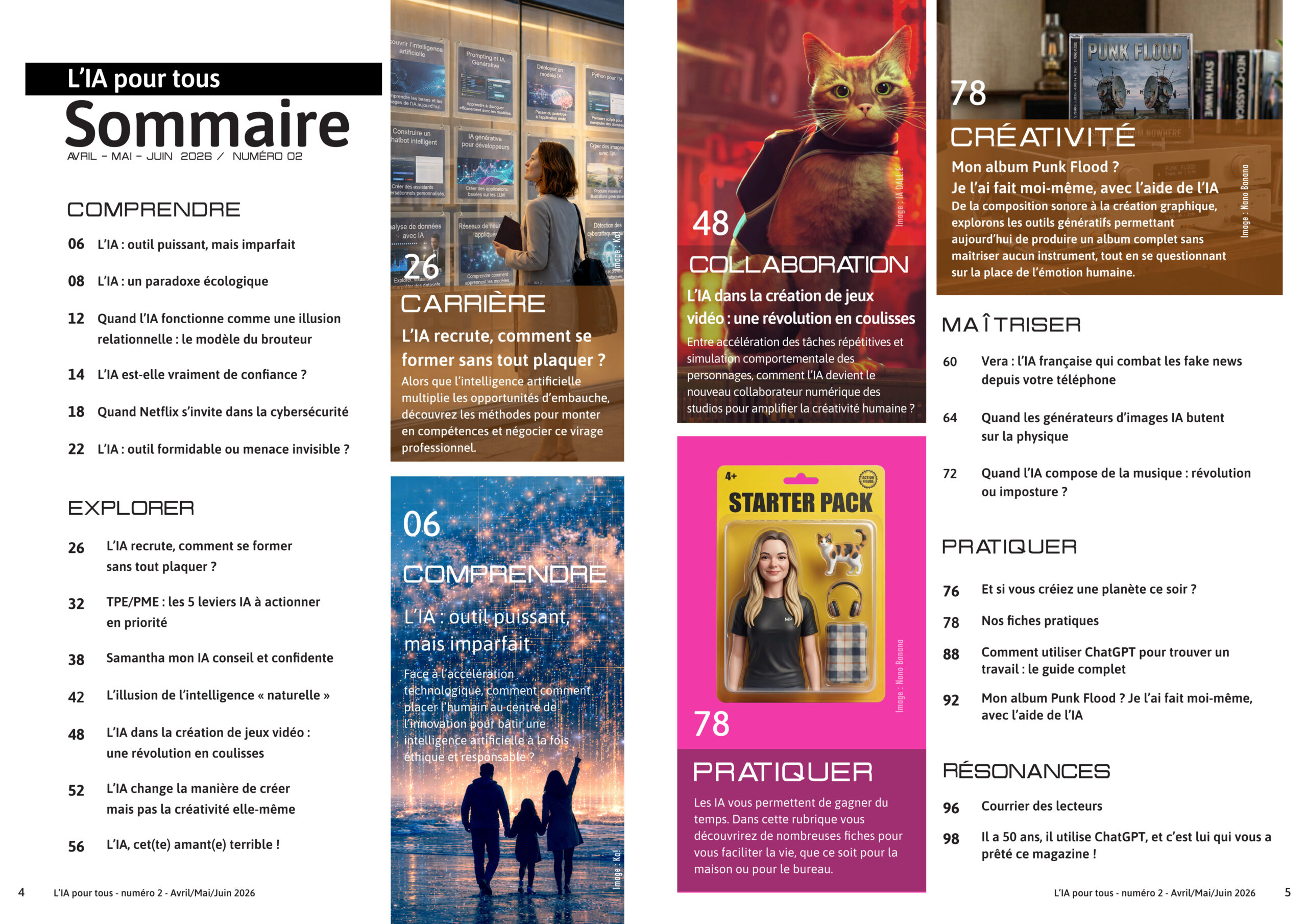 L’édito de Frédéric Boisdron, rédacteur en chef, donne le ton dès les premières lignes. Interdire l’IA aux enfants en 2026 revient à leur retirer une carte dont ils auront besoin toute leur vie. Cette conviction traverse le numéro de part en part, des articles sur la cyberpsychologie jusqu’au portrait-robot du lecteur type, cet homme d’une cinquantaine d’années qui a prêté ce magazine à son collègue avant même de l’avoir terminé.